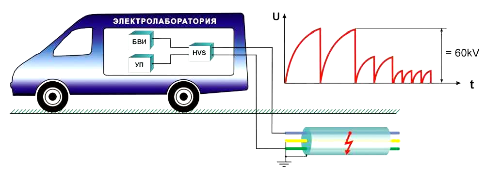 Модуль BD-60 представляет собой набор высоковольтных элементов, интегрированных в поисково-испытательную электротехническую лабораторию.