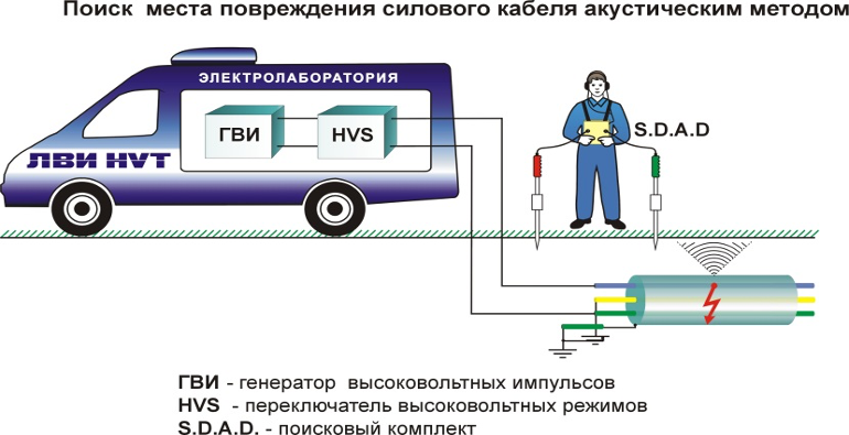 Для точного определения мест повреждений подземных кабелей индукционным и акустическим методами;